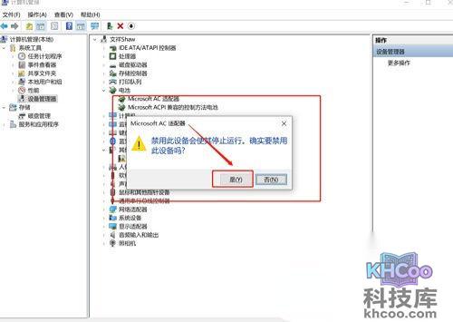 2、进入管理的界面以后,我们找到设备管理器,在这里选择电池,右键以后在弹窗中选择禁用该设备。