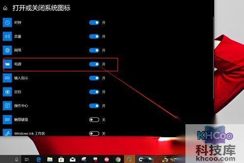 3、随后我们将开关打开,我们的任务栏就会显示电量图标了。