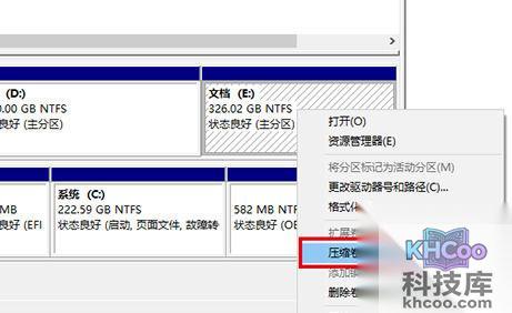 2、进入以后就可以看到你的磁盘分区现状,选择你要分盘的盘符,然后右键选择“压缩卷”
