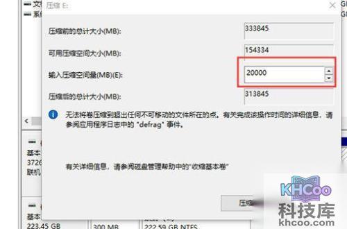 3、输入你要压缩的空间。