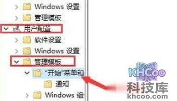 3、这样便会启动本地组策略编辑器窗口,依次点击“ 用户配置/管理模板/开始菜单和任务栏 ”选项。