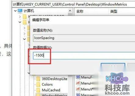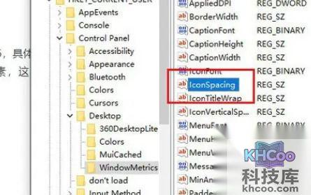 3. 在打开的WindowMetrics子项中,寻找名为“ IconSpacing ”的字符串值,双击并更改其键值。