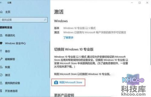 2、随后我们在更新与安全界面中,点击左侧项目栏中的激活按钮,然后在切换windows 10按钮下,点击进入到Microsoft Store。