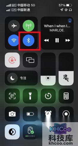 3、也可以从屏幕刘海右边下滑打开控制中心,点击蓝牙图标开启即可。