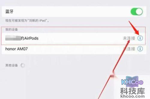 4、点击已经连接的AirPods3右侧“!”号标志。