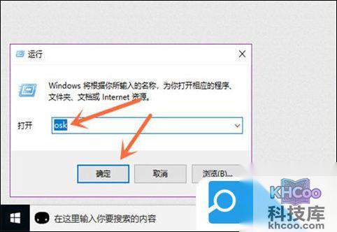 3、在运行对话框中输入“osk”并点一下下边的“确定”按键。