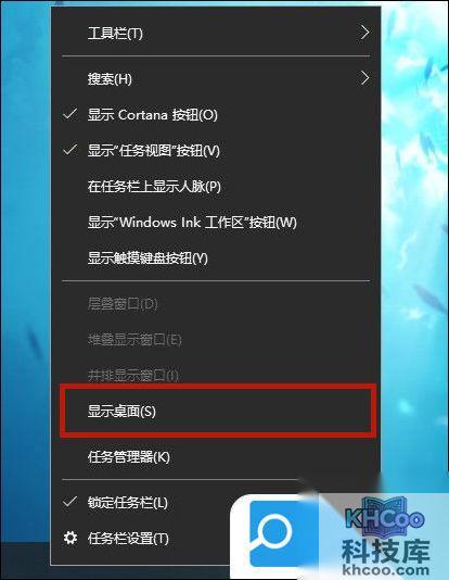 1. 在系统任务栏中单击鼠标右键,在跳出的菜单中选择显示桌面,即可快速回到桌面。
