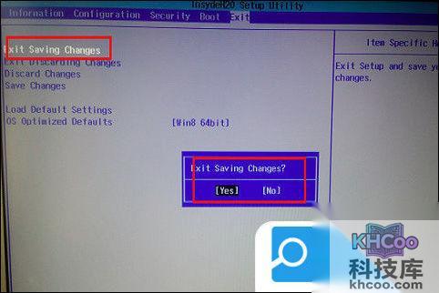 5、最后,修改完Bios后,点击“F10”键,会提示“Exit Saving Changes”,然后选择“yes”就可以保存并退出Bios,通过此方法可以禁用Fn键功能。