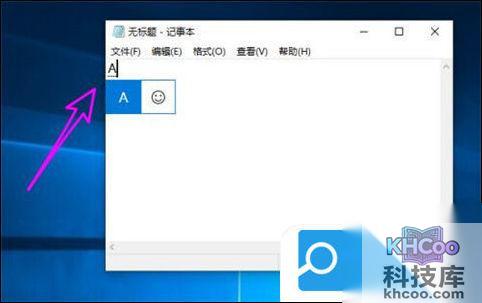 2、然后按下键盘上上的caps lock键,输入法的图标变为“A”,说明切换到了英文大写状态,此时输入的字母都是大写英文字母,再次按下caps lock键就可以切换回小写;