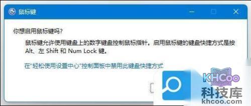 2. 在弹出的窗口中,点击“是”即可启用鼠标键;