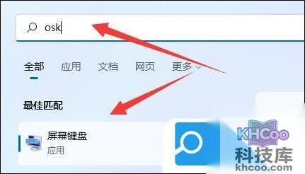 4. 在上方的搜索栏中输入“osk”打开屏幕键盘;