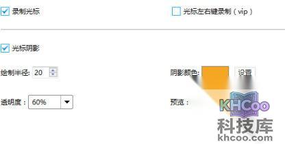 也可以录制鼠标光影,还可以设置颜色,透明度等。