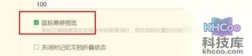 第三步,找到【鼠标悬停预览】属性按下就成功开启。