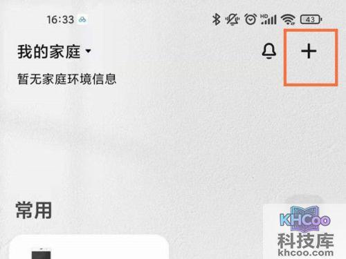 1、在米家app和小爱音箱app登录同一个小米账号,再打开米家App点击首页右上角"+"。
