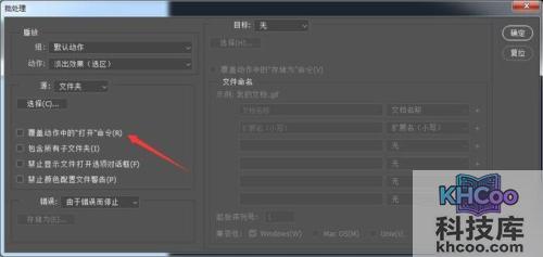 5、勾选上覆盖动作中打开命令选项之后,点击确定
