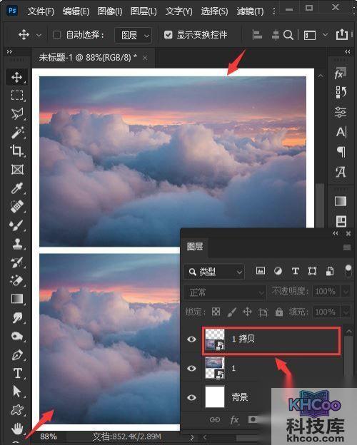 按住【 ALT 】键把图片拷贝一份出来,移动下面。