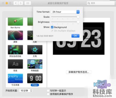 1、打开fliqlo,会自动弹到屏幕保护设置界面。