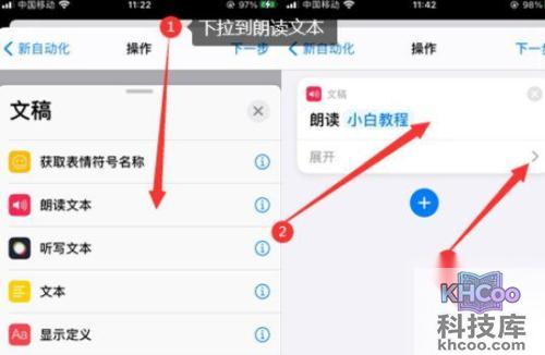 4、下拉滑到”朗读文本“——点击在弹出”朗读“处输入”标题“,点击展开