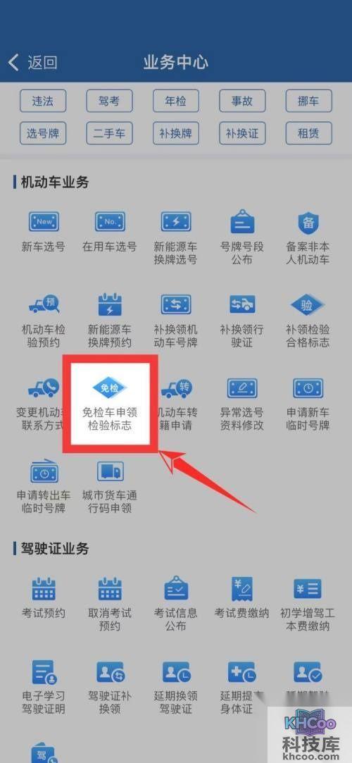 3. 选择免检车申领检验标志:在业务列表中,找到并点击“免检车申领检验标志”服务。