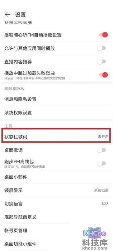 3、在设置页面里,用户可以找到【状态栏歌词】,选择并点击进入。