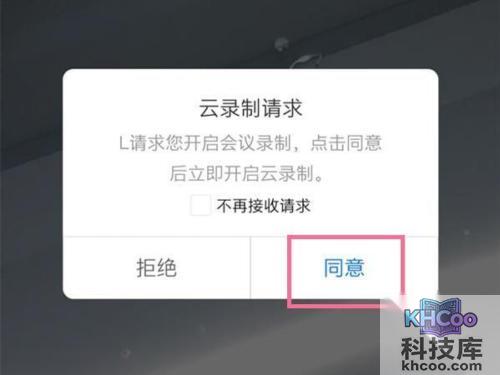 4、第四步:主持人同意后就可以进行录制了,点击【同意】,如果是主持人直接点击更多->云录制就可以了。