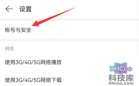 3、此时能够看到设置中的“ 账号与安全 ”进入。