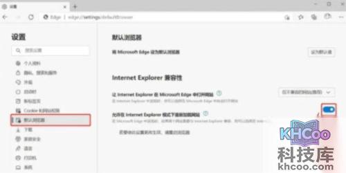 第二步 :在设置中找到“默认浏览器设置”选项,然后打开“允许在Internet Explorer模式下重新加载网站”指令。