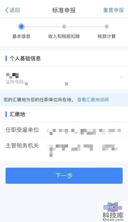 5、确认预填的收入和扣除信息无误,点击下一步。