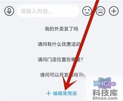 1. 打开饿了么软件进入后,在其中打开一条私信进入到聊天窗口里,再在底部 点击 输入框,在弹出的常用语列表最下方点击“编辑常用语”进入。