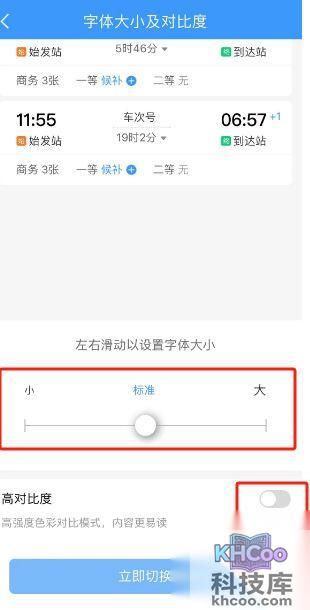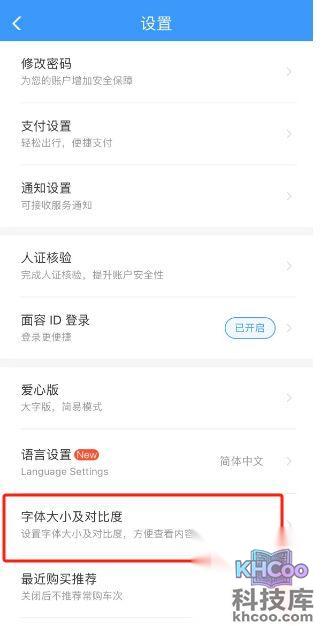 铁路12306怎么调整字体大小及对比度