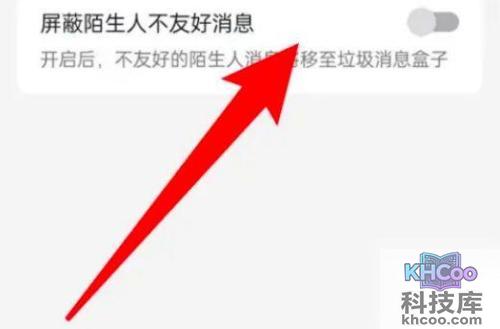步骤六,开启屏蔽陌生人不友好消息功能即可。