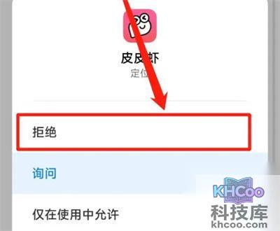 6. 最后页面中会弹出一个窗口,在其中点击选择“拒绝”即可关闭皮皮虾的定位功能。