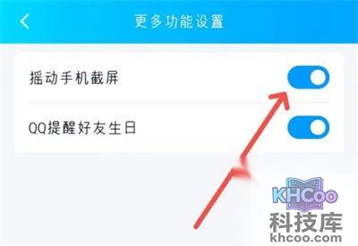 4. 最后在进入的页面中就能看到“摇动 手机截屏 ”这个功能了,在它的后面点击对应的开关按钮,把它设置为蓝色的开启状态即可使用该功能。