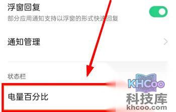 2、进入通知与状态栏后找到 电量百分百 打开后面的开关。