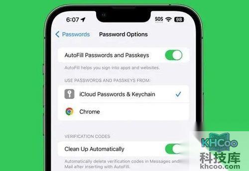 2、用户可以在“密码选项”下的“ 密码 ”应用中为验证码打开“ 自动清理 ”