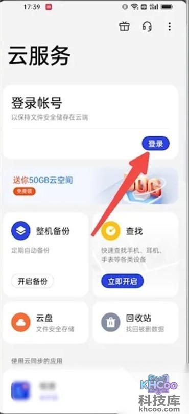 1、首先打开手机中的云服务进入到首页之后点击【登录】;