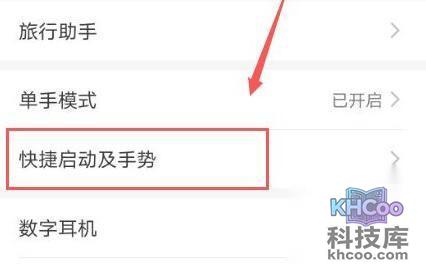 2、点击“快捷启动及手势”