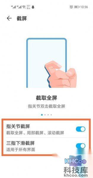 3、再点击“截屏”,把指关节截屏打开就可以了。