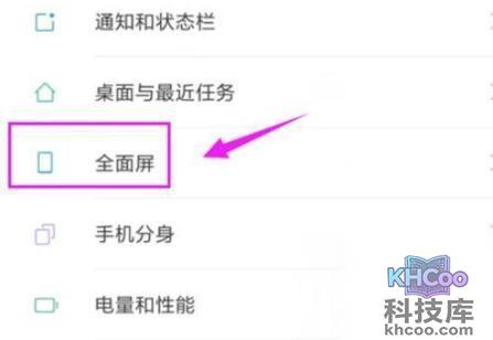 2、接着找到并打开“ 全面屏 ”设置。
