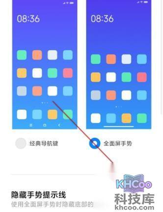 3、将“ 隐藏手势提示线 ”后面的开关打开。