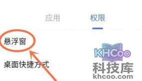 3、接着我们点击 悬浮窗 。