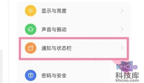 1、打开手机桌面上的设置,按下通知与状态栏中的选项。