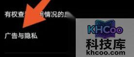3、接着点击“ 广告与隐私 ”。