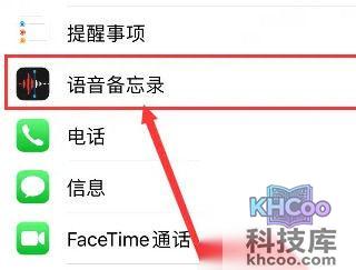2、接着点击“ 语音备忘录 ”。