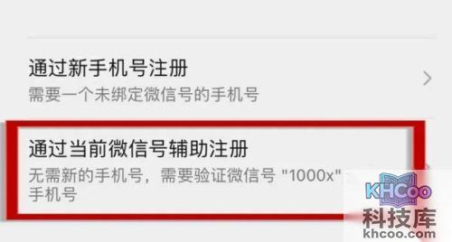 5、再选择“通过当前微信号辅助注册”