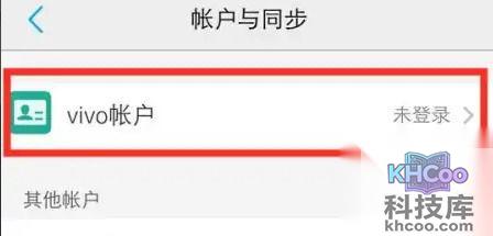 3、在账户和同步界面,选择Vivo账户