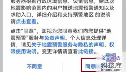 7.最后小伙伴们再点击同意并开启就将所有的操作完成,成功开启地震预警了。