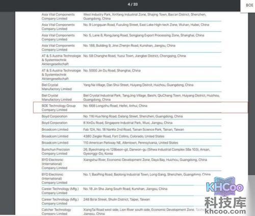 京东方(https://www.apple.com/supplier-responsibility/pdf/Apple-Supplier-List.pdf)