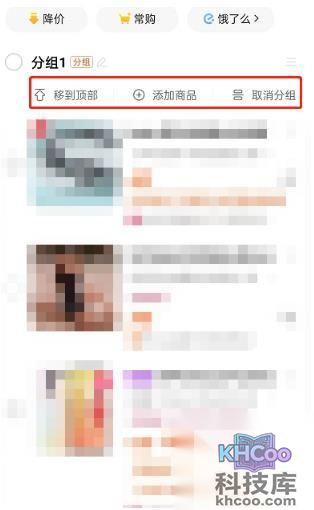 6、最后创建分组完成后,还可以进行移到顶部、添加商品、取消分组操作。