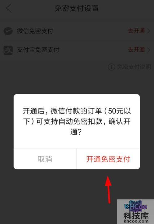 3、这样一来,通过点击自己想设置免密支付的软件,就能够进入软件里开通免密码支付的权限,不过免密支付有着50元的上限哦!